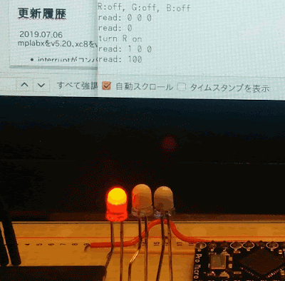 PICマイコンとArduinoにそれぞれプログラムを書き込み、動かしてみました。期待通りに動きました。